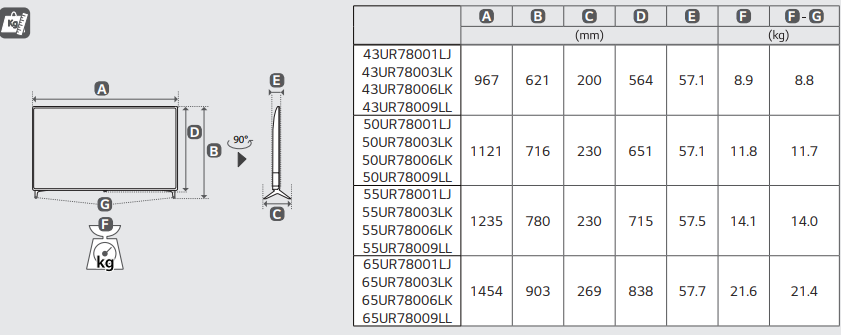 LG 55UR78001LJ - схема с размерами версия 2 к телевизору на разных языках на Hausdorf