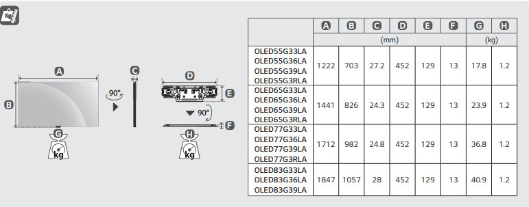 LG OLED55G3RLA - схема с размерами версия 2 к телевизору на разных языках на Hausdorf