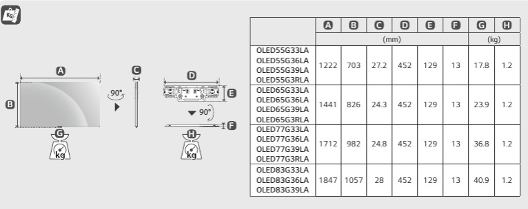 LG OLED83G3 - схема с размерами версия 2 к телевизору на разных языках на Hausdorf