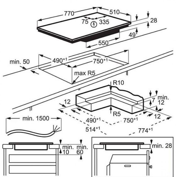 AEG NIK85M30IB - схема с размерами к варочной панели на разных языках на Hausdorf