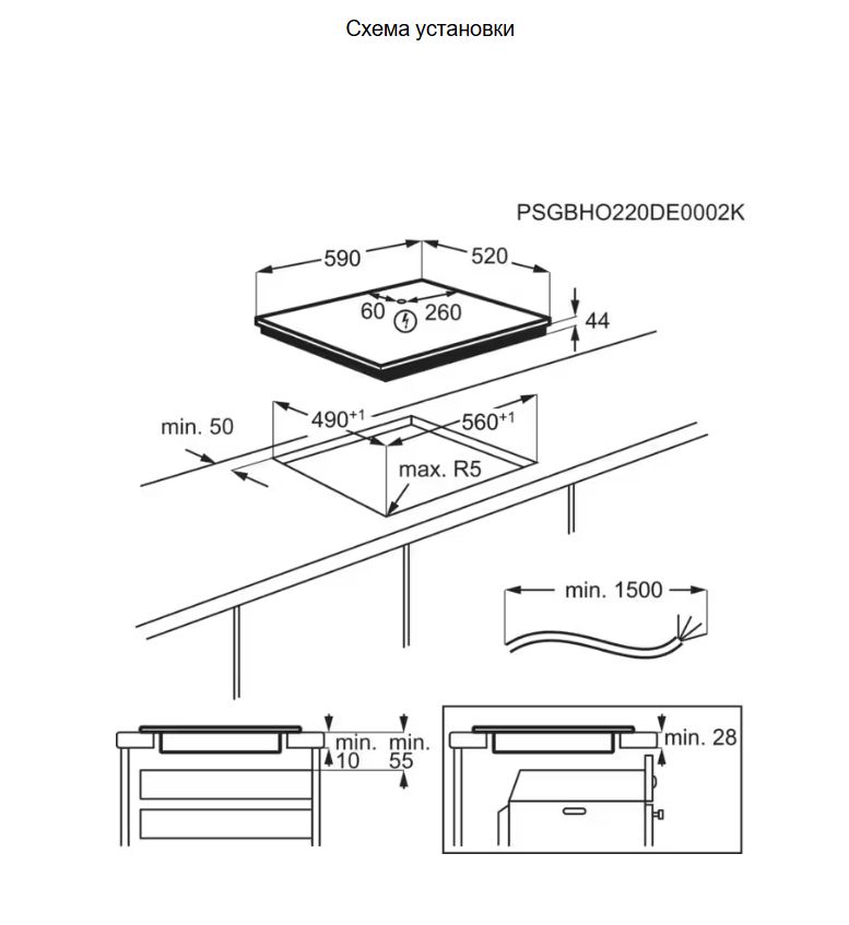 AEG TO64IC00FB - схема с размерами версия 2 к варочной панели на разных языках на Hausdorf