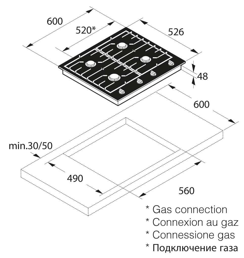 Asko HG1666AB - схема встраивания с размерами к варочной панели на разных языках на Hausdorf