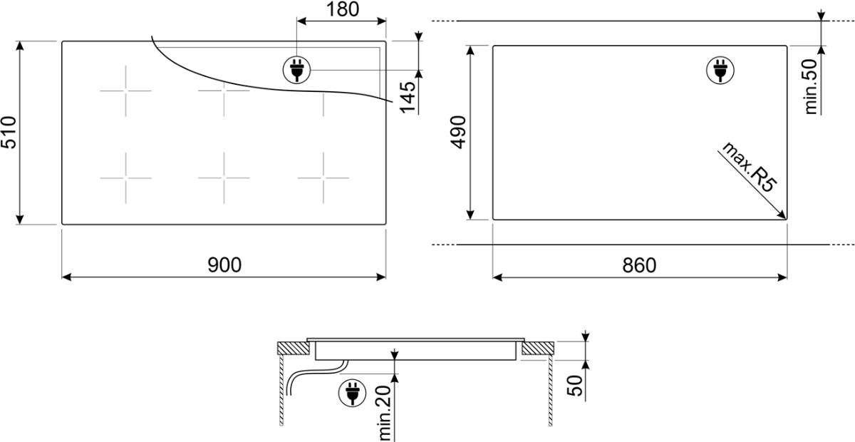 Smeg SIM3964N - схема встраивания к варочной панели на разных языках на Hausdorf