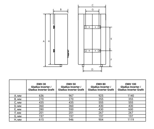 Electrolux EWH 30 Gladius Inverter - схема с размерами версия 2 к водонагревателю на разных языках на Hausdorf