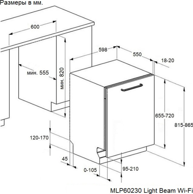 Maunfeld MLP60230 Light Beam Wi-Fi - схема встраивания к посудомоечной машине на разных языках на Hausdorf