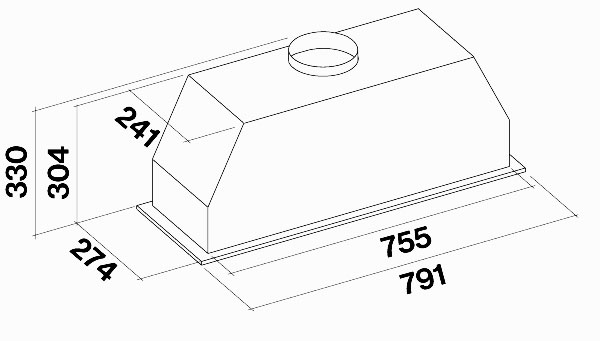 Falmec Gruppo Incasso PRO - схема с размерами к вытяжке на разных языках на Hausdorf