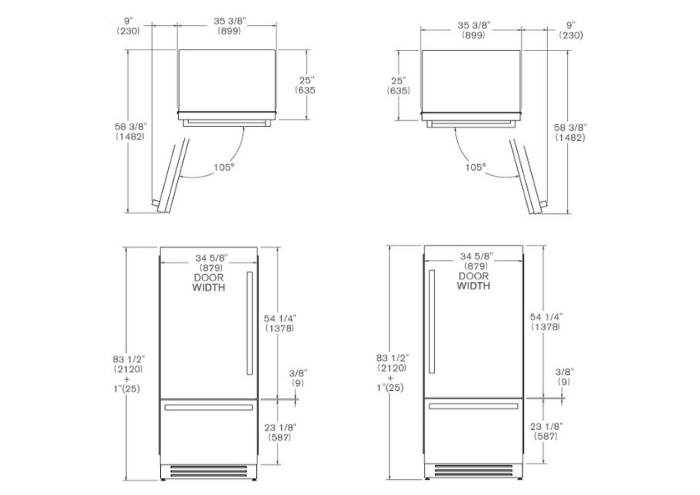 Bertazzoni REF905BBRPTT/24 - схема с размерами версия 3 к холодильнику на разных языках на Hausdorf