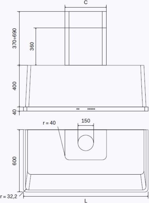 Ilve AM150/BL - схема с размерами к вытяжке на разных языках на Hausdorf