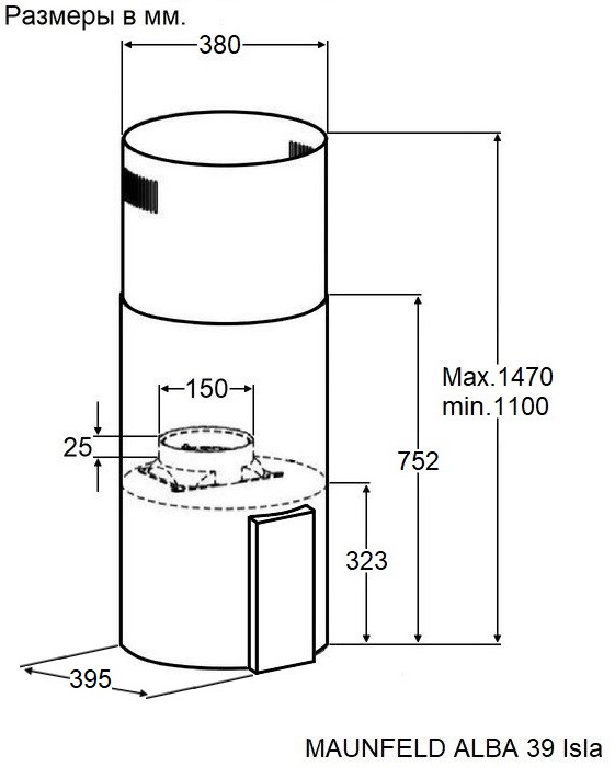 Maunfeld ALBA 39 Isla White - схема с размерами к вытяжке на разных языках на Hausdorf