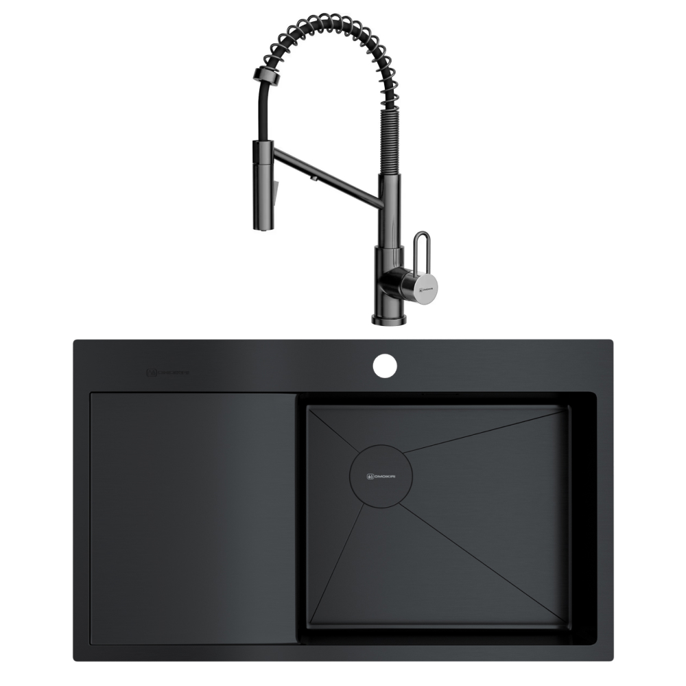 Комплект Omoikiri (мойка AKISAME 86 SIDE GB-R + смеситель MIKAWA 2 PLUS-SB GB) в Тюмени