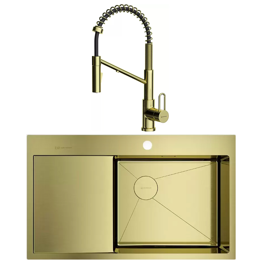 Комплект Omoikiri (мойка AKISAME 86 SIDE LG-R + смеситель MIKAWA 2 PLUS-SB LG) в Тюмени