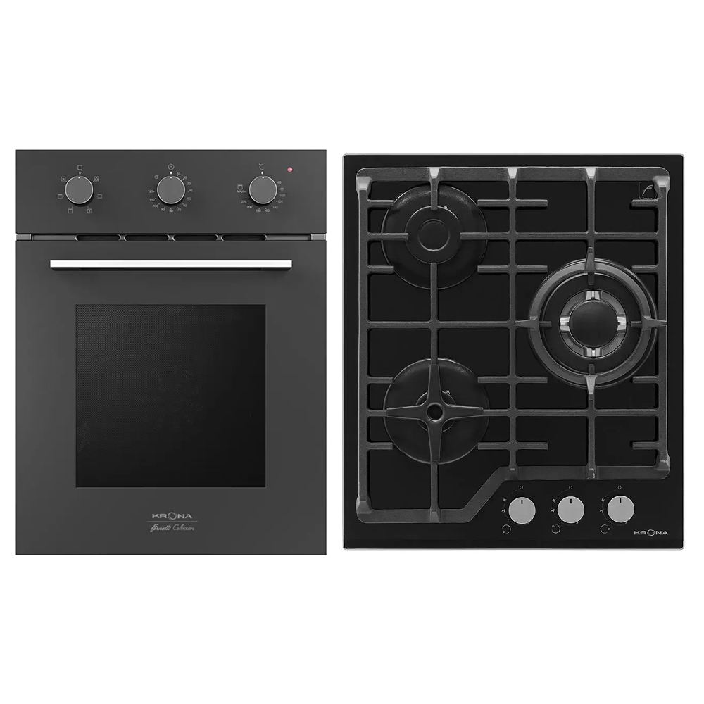 Комплект KRONA (духовой шкаф STRETTO 45 BL + варочная панель CORNIOLA 45 BL) в Тюмени